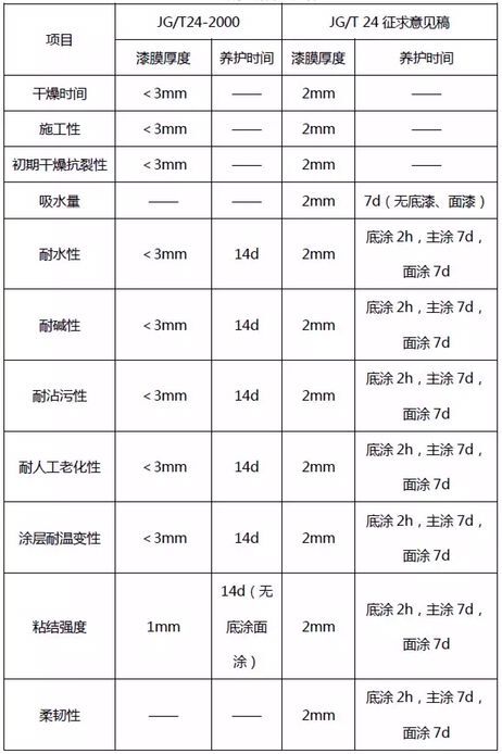 對(duì)比JG/T24-2000《合成樹脂乳液砂壁狀建筑涂料》與JG/T24-xxxx替代JG/T24-2000的征求意見稿,主要技術(shù)變化如下: